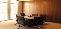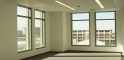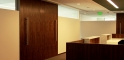 The project features high-end finishes, including custom walnut millwork, stone flooring, and glass-walled conferenced rooms. Daylight radiates throughout the space because of the floor-to-ceiling windows and clerestories at interior walls.